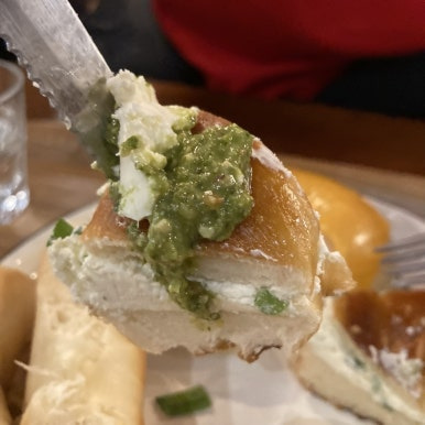 They said the basil pesto would go really well with the potato cheese bagel 🤤